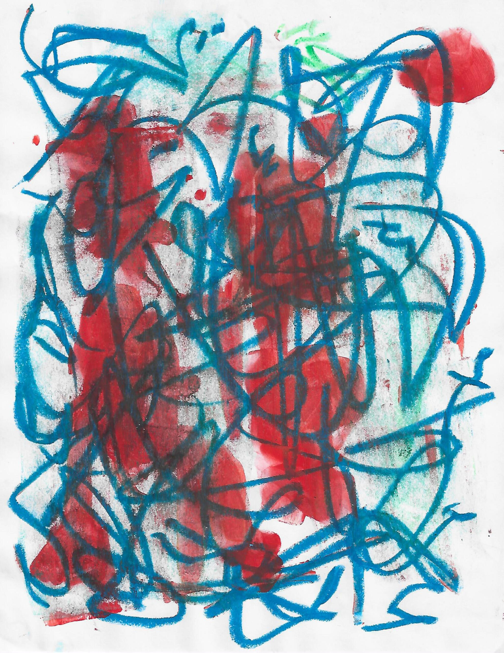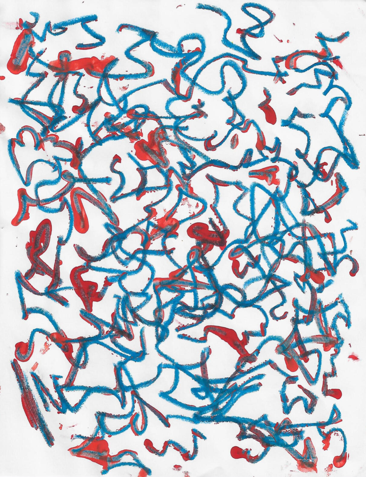 The First Dialogue demonstrates that meaning does not arrive whole; it must be wrestled from noise. Applying rudimentary mirroring, the work creates a lattice that suggests but does not stabilize into structure. Blue lines form proto-scripts, endlessly looping, while red interruptions rupture continuity. The argument here is that dialogue begins in dissonance: language first appears as unstable interference. The work embodies The Process’s initial recognition that chaotic marks can be refracted into relation. Though primitive, it proves that the scream can begin to converse with itself, inaugurating the trajectory from eruption to codification.