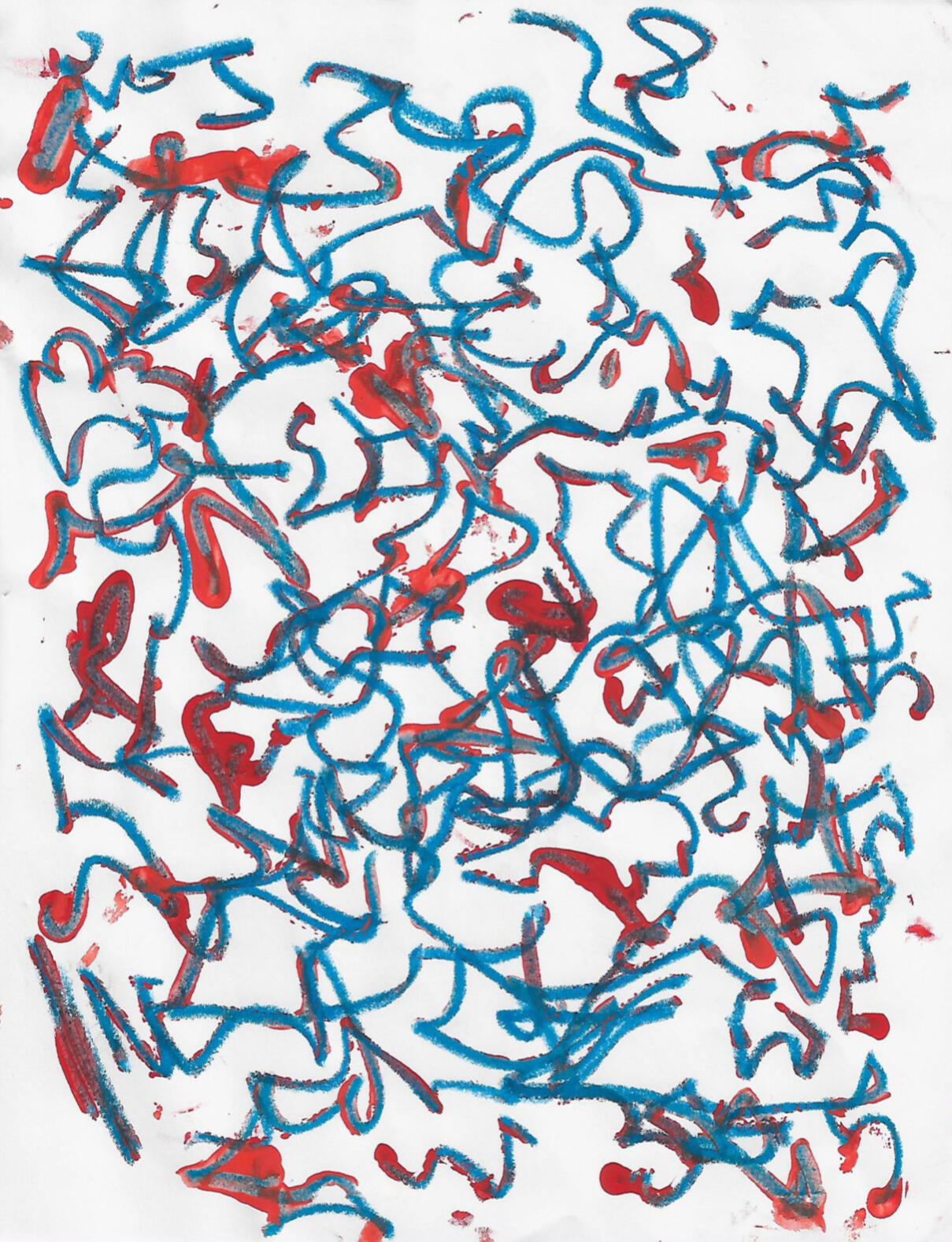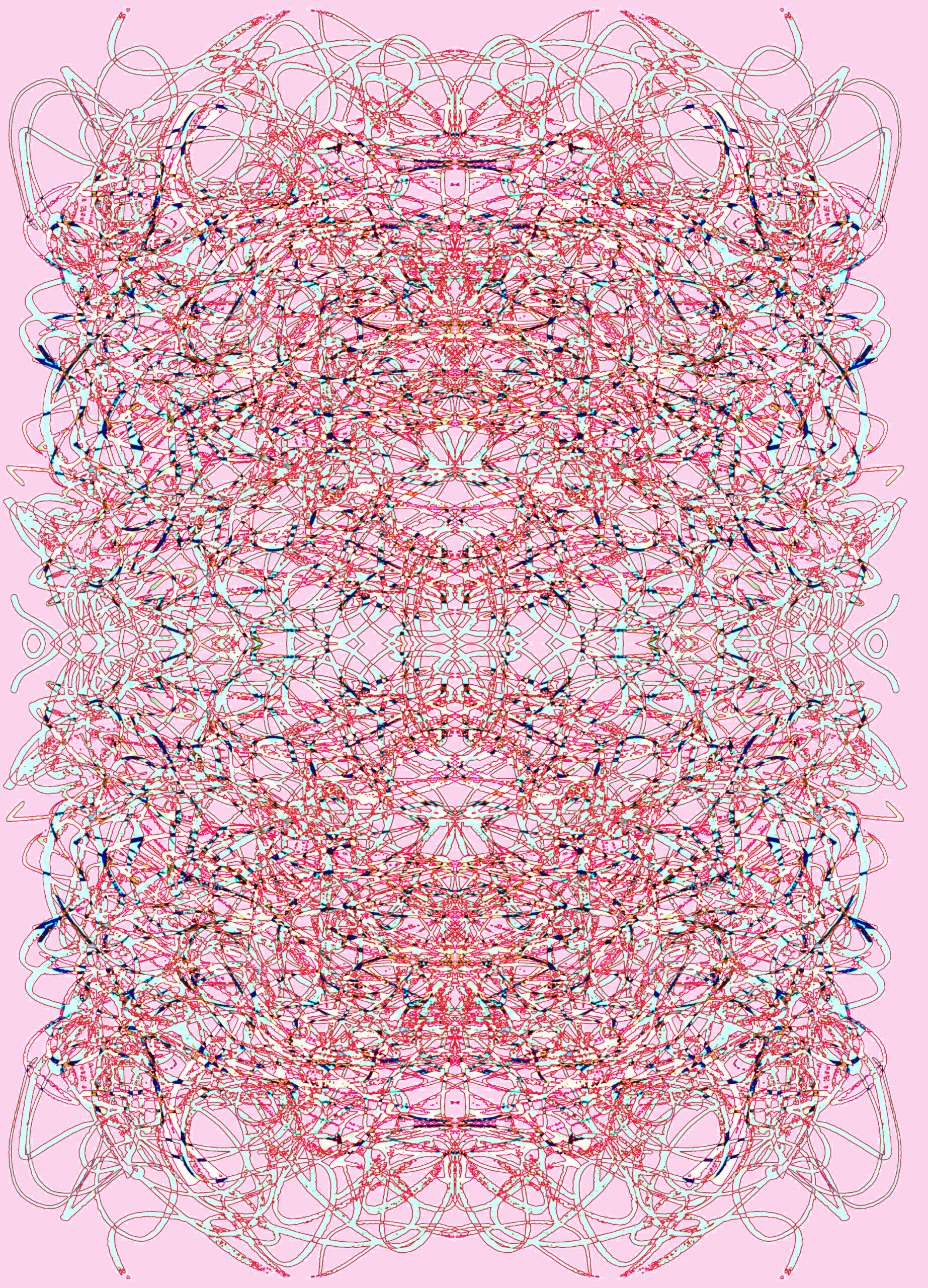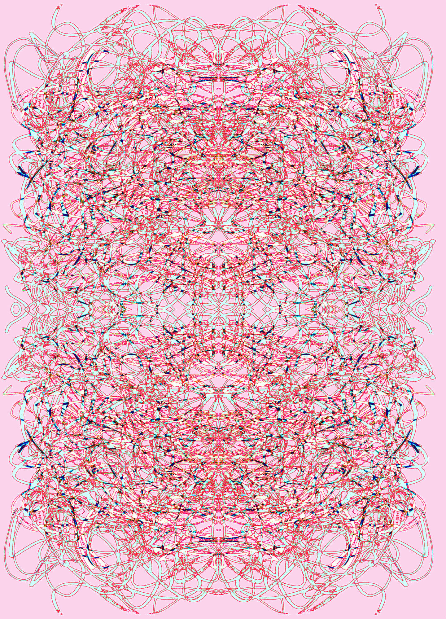 The First Dialogue demonstrates that meaning does not arrive whole; it must be wrestled from noise. Applying rudimentary mirroring, the work creates a lattice that suggests but does not stabilize into structure. Blue lines form proto-scripts, endlessly looping, while red interruptions rupture continuity. The argument here is that dialogue begins in dissonance: language first appears as unstable interference. The work embodies The Process’s initial recognition that chaotic marks can be refracted into relation. Though primitive, it proves that the scream can begin to converse with itself, inaugurating the trajectory from eruption to codification.